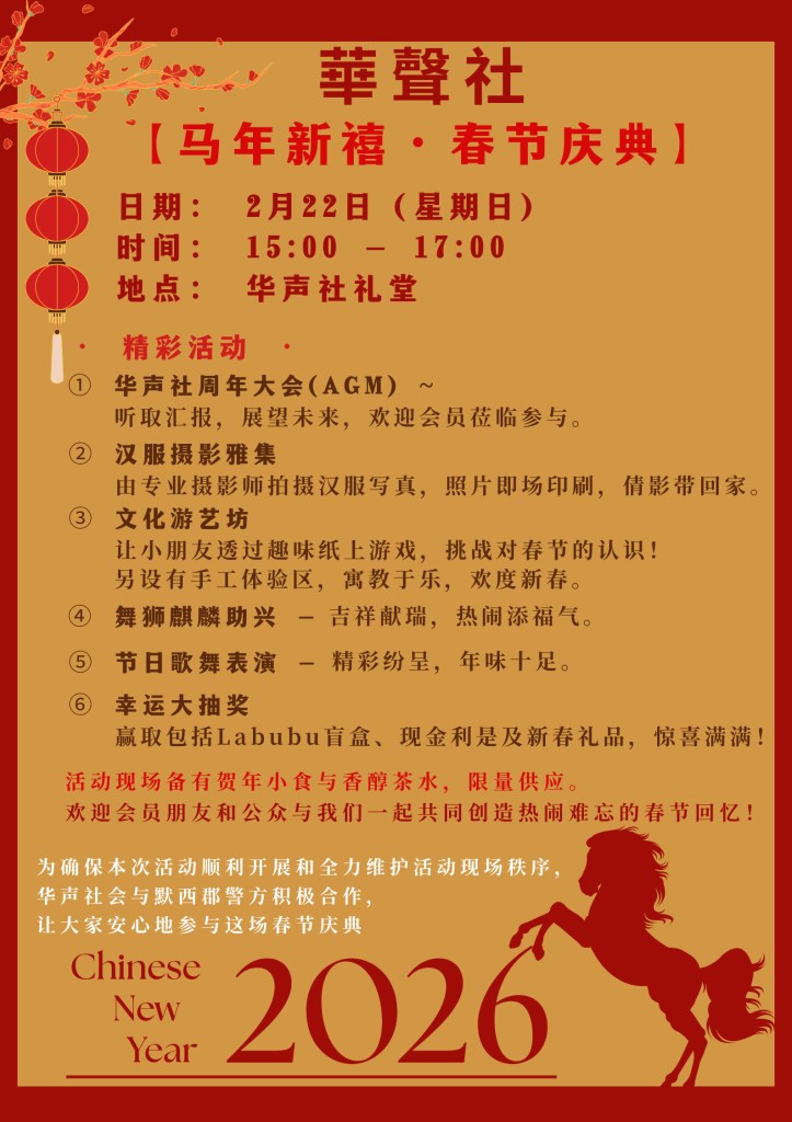 「春节团圆,定格美好」2025年华声社春节庆典圆满落幕!感谢每一位社区成员的参与,让这个春节充满欢声笑语与浓浓年味。期待明年再相聚,共庆新春!💐🎉Capturing Chinese New Year Memories Thank you to everyone for filling this festive season with laughter and tradition. See you next year for more celebrations !